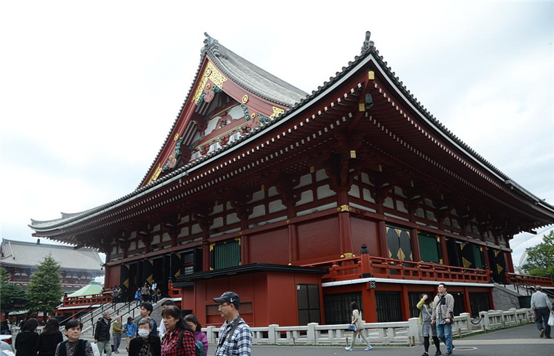 我们来到了浅草雷门观音寺,门上挂着写有“雷门”两个字的大红灯笼,这里每天都有前来参拜的观光客,终年熙熙攘攘。而相邻的【仲见世商店街】上常能见到来自海外的观光客的身影商店街内除了保留了传统日本店铺装修风格外,团友也可在此搜罗到极具日本传统风格的各式商品。