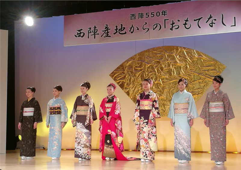 参观西阵织和服馆,西阵织是把丝线先染过色后才织成图样的纹织品,是驰名世界的日本代表性工艺品。会馆为了让游客感受日本传统的服装艺术,还准备了半小时左右的和服表演。